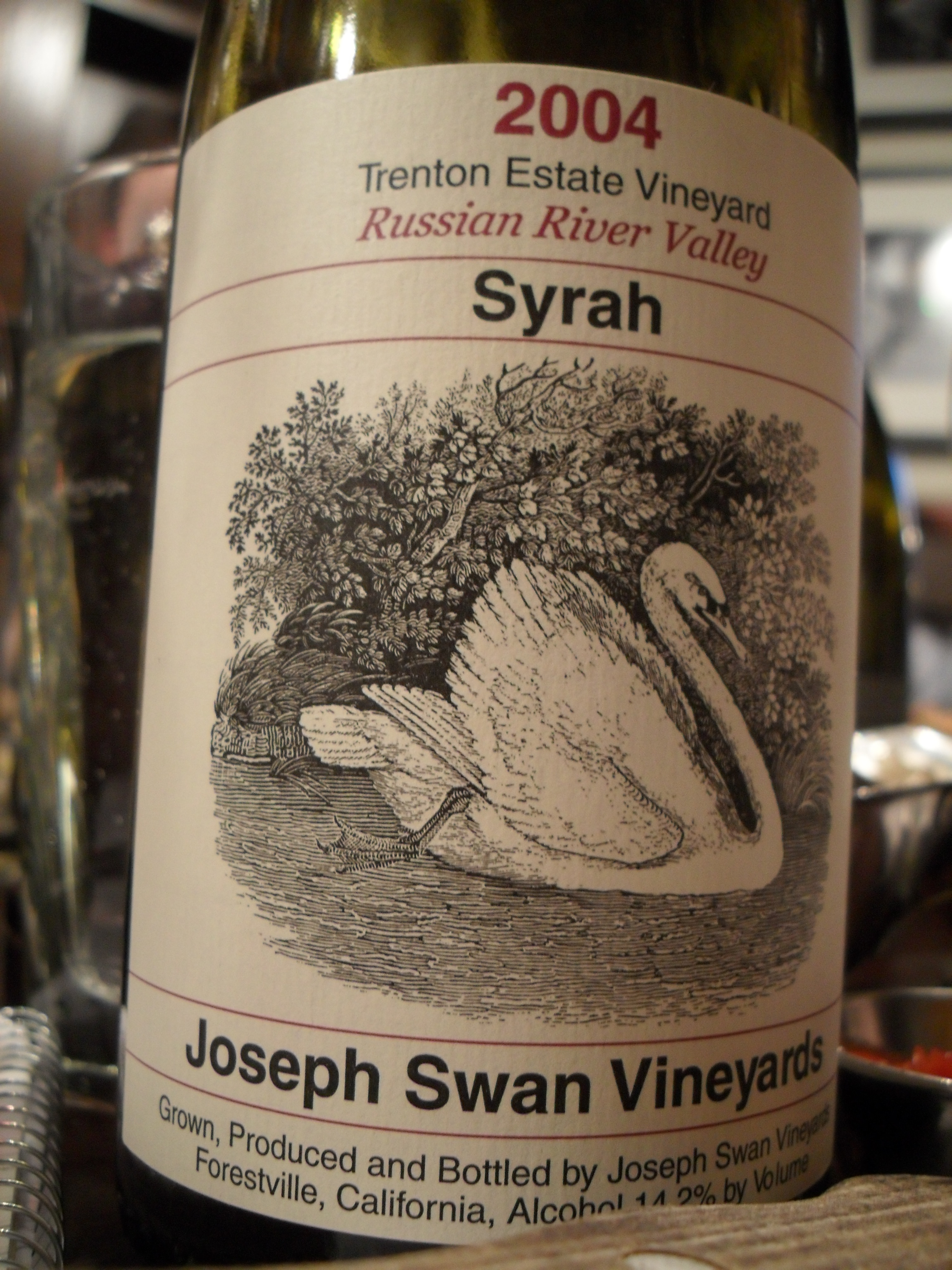 The most surprising and delightful wine of the afternoon was the Joseph Swan 2004 Syrah. Fresh and elegant, a classic Cote Rotie blend, 95% syrah, 5% viognier which gave it the lifted floral notes and balance that only viognier can do for syrah. Lovely cinammon, cloves and sweet spice on the nose with dark, black fruits underlying it all.