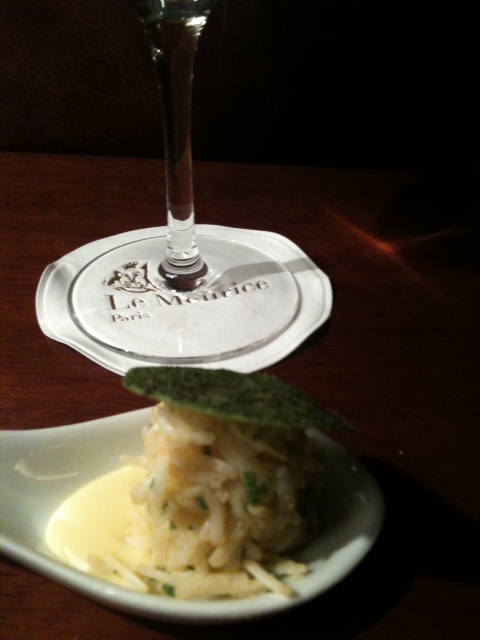 Although I’m not royalty, I was invited to stay at Le Meurice to participate in their monthly wine and food matching event, Nocturnes. When I arrived, I was shown to my Junior Suite. Sweet! The suite was almost bigger then my flat in London, complete with it’s own sitting room and 2 long hallways. What I liked about the suite was that although the design is elegantly comfortable, furnished in 18th century style, there are always bits of whimsy, from the steel tree trunk used as a table to quirky artwork set amongst more classic paintings, Le Meurice surprises when you least expect it. Not to mention, the iPod home, hi def flat screen tv and wireless connections. I could have wallowed in my king sized bed for my entire visit but I was actually here for an event.
