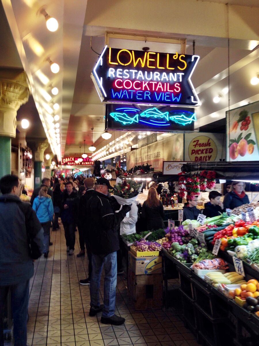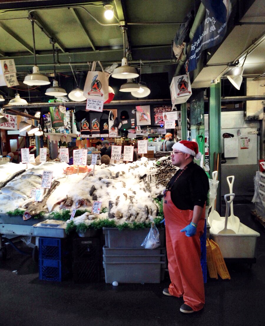 As I was there over the holidays, Seattle was full of the Christmas Spirit. Our first stop was the famous Pike Place Market. Founded in 1907, it’s THE place to go for fresh seafood as well as having an artists market and lots of fresh fruit and veg. I love wandering around markets and this one was no exception.