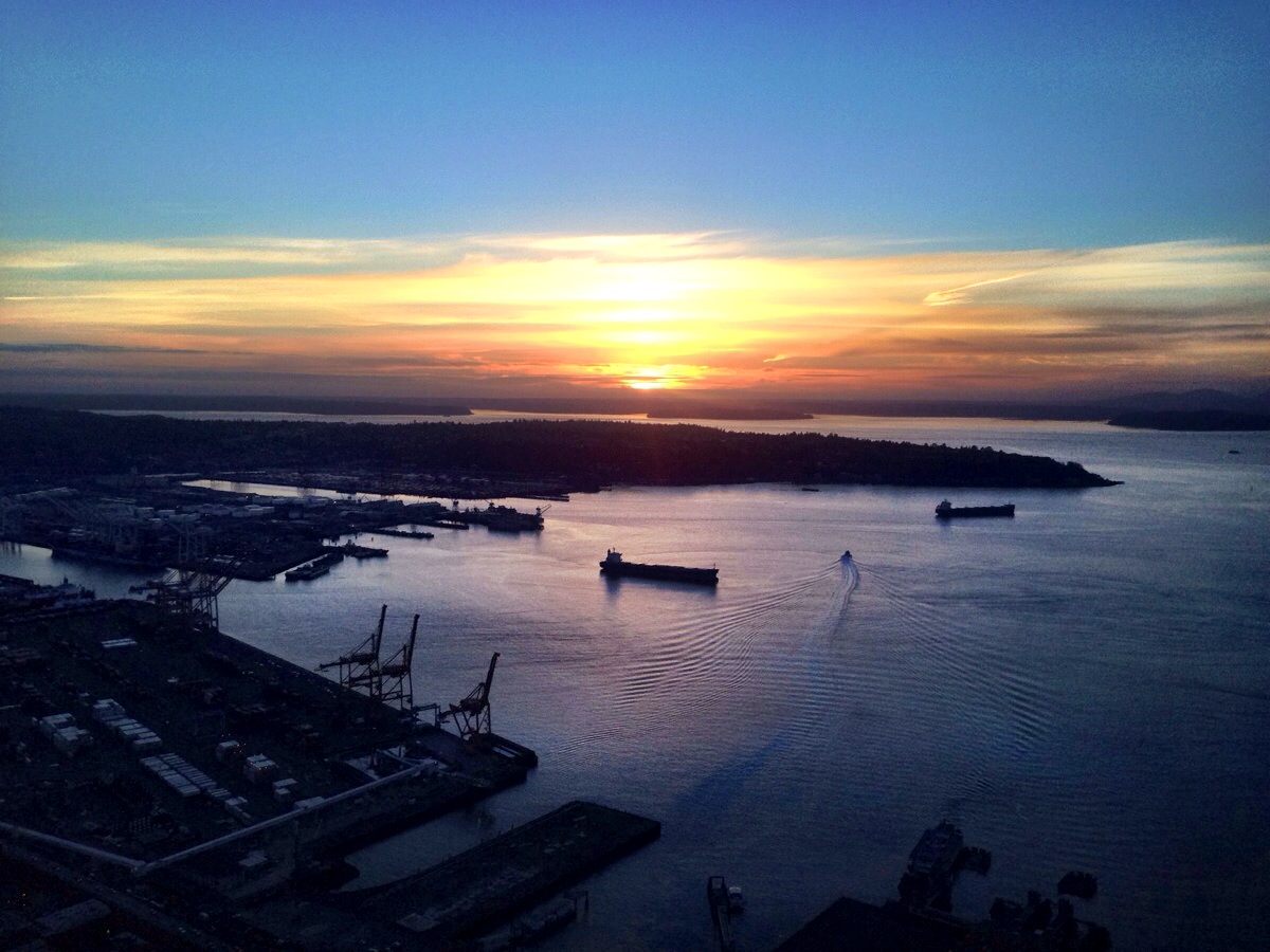 We didn’t go to the top of the Needle because the day before we had visited the Colombia Center which is the tallest building in Seattle. Their observation deck is on the 73rd floor, which at nearly 1000 ft high is almost twice as tall as the Space Needle and even higher than the Shard here in London. We had great views at sunset and even had a view of a burning warehouse down below. Fortunately, nobody was injured but it did make for a bit of excitement to see the helicopters buzzing around below us.
