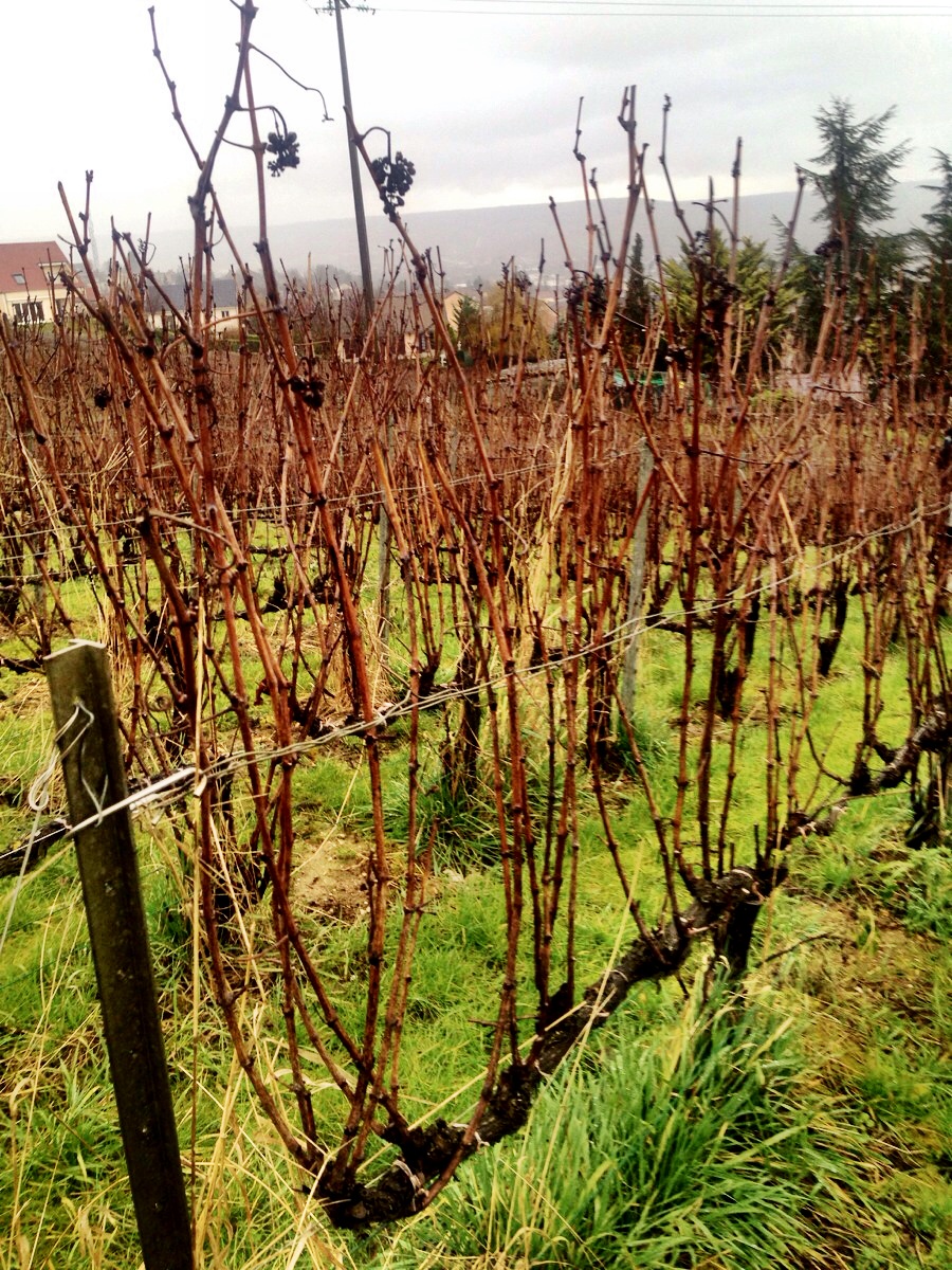 The winemaker of Charlot, Vincent, is marked as one of the up and coming winemakers of Champagne so I was anticipating our visit to the vineyard and cellars. It was a rainy and windy afternoon as we drove up to the house and Vincent suggested we visit the vineyards in Epernay which are protected from the wind. We drove out to have a look at his biodynamic vineyards, full of wild garlic, violets and covered in grass. Vincent converted entirely to biodynamic practices 5 years ago and is wines are now certified by Demeter. All of his wines are biodynamic but he only labels half as such and the other half he sells as organic.