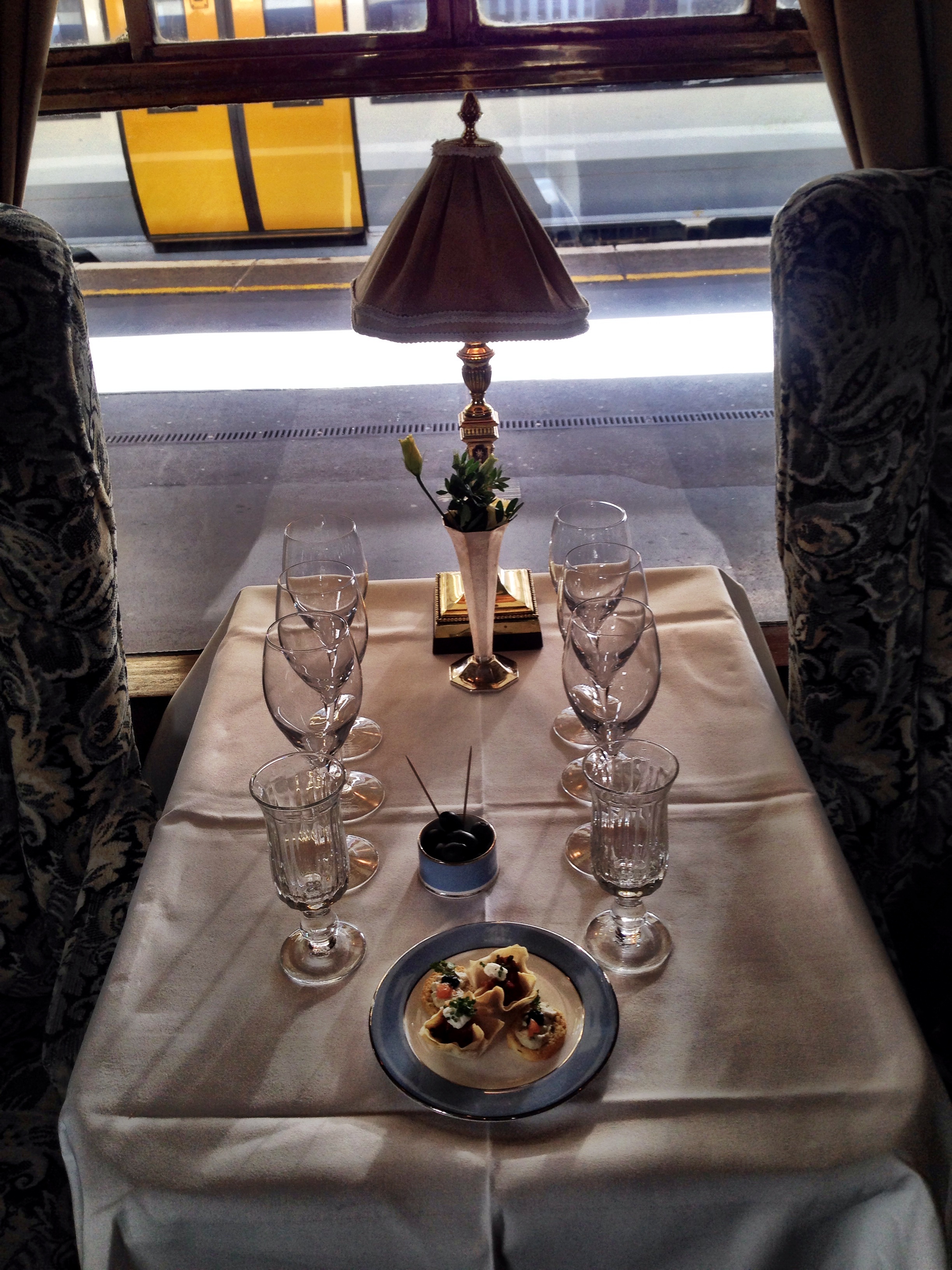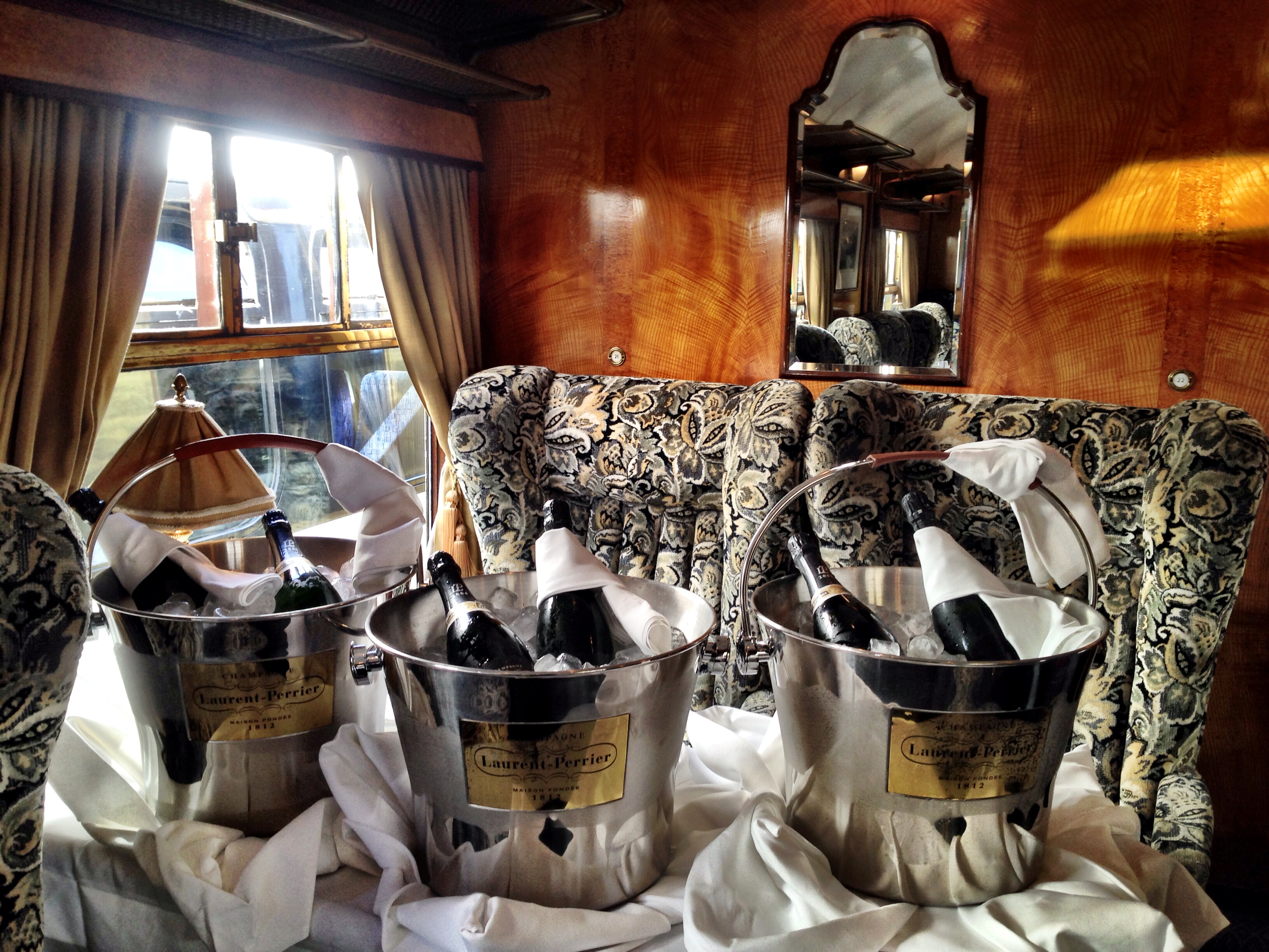 However, we were there to taste champagne. The MD of Laurent-Perrier, David Hesketh, was on board to lead us through a tasting of not only the 2006 but also the 2004, 2002 and non vintage as well as the Grande Siecle and Laurent Perrier Demi-Sec with lunch. It was a slightly extravegant lunch but we were lunching on one of the original “Palaces on Wheels”.